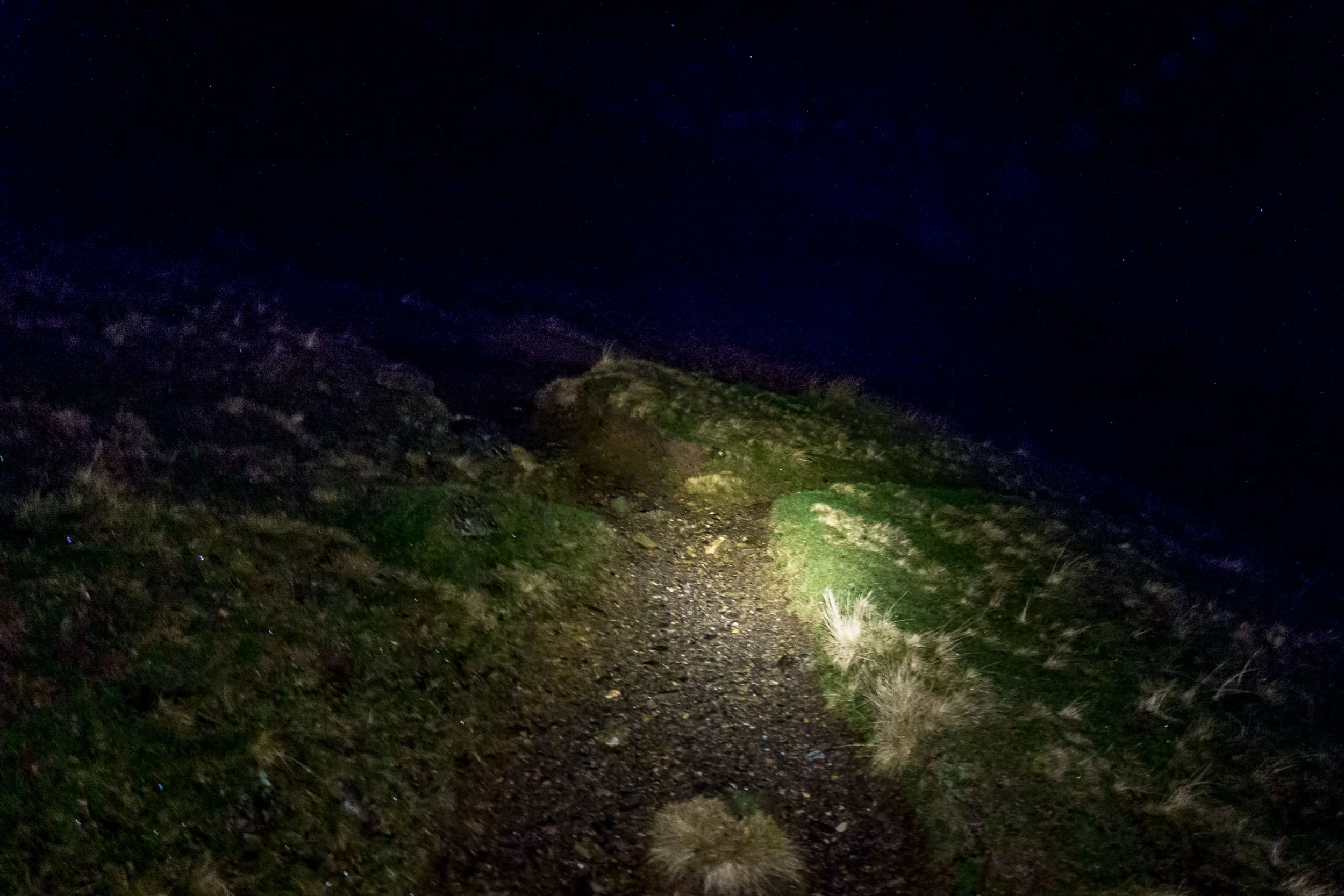 Not the most inspiring image to begin with: heading up by torch-light.