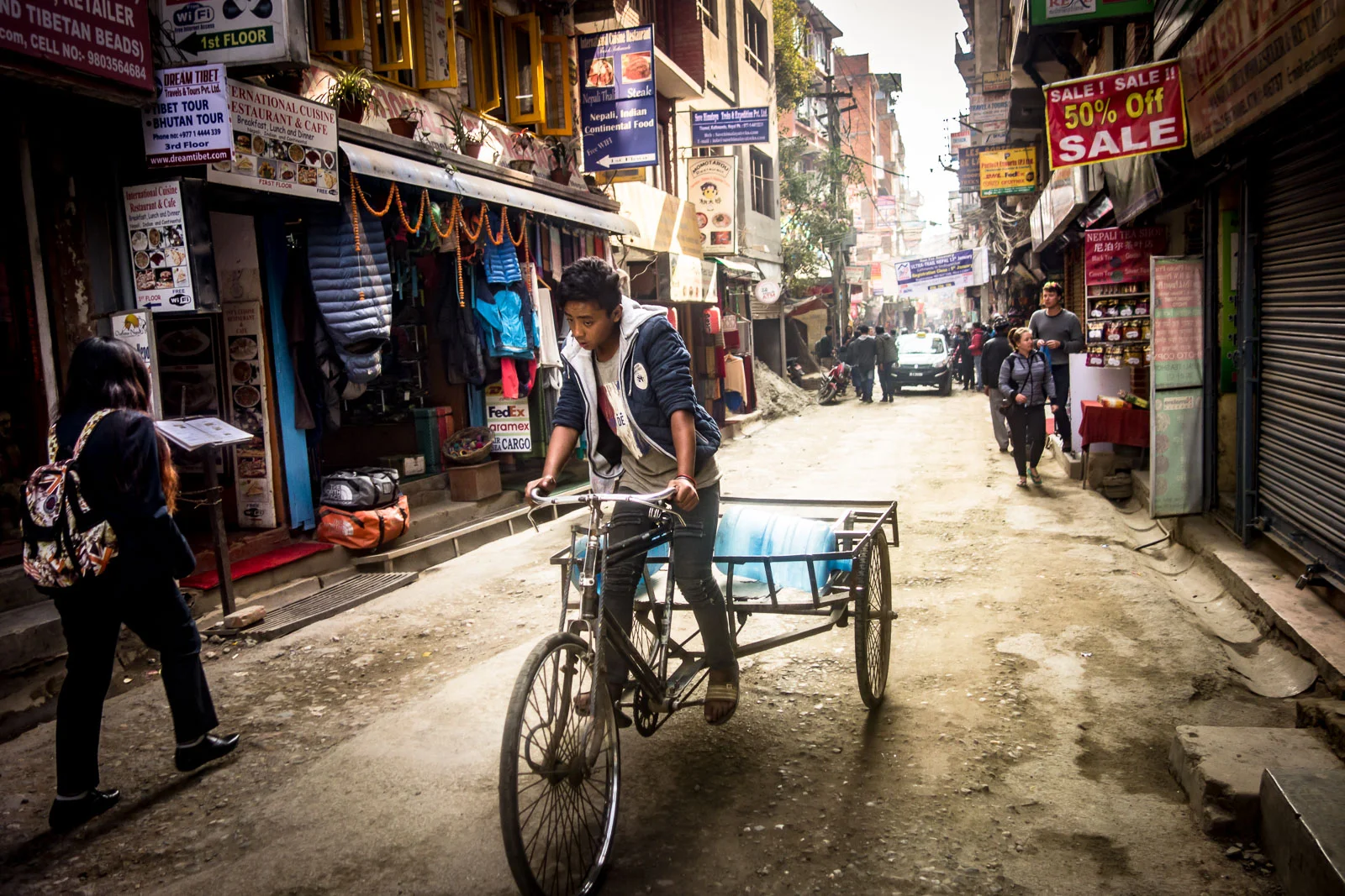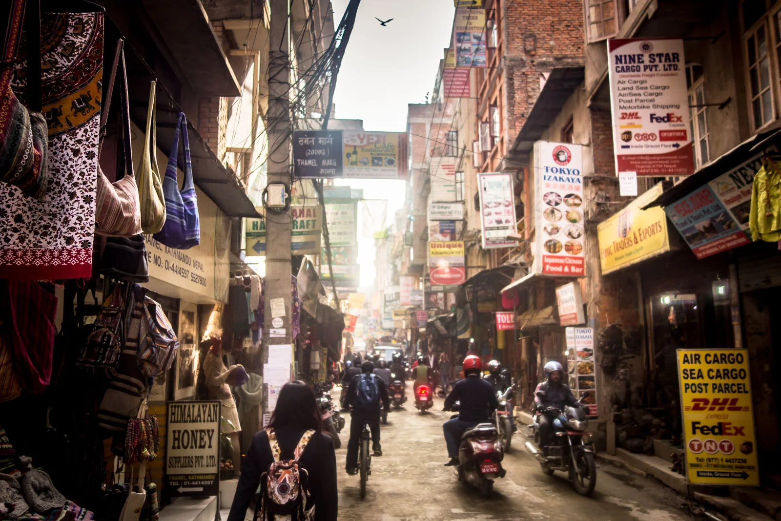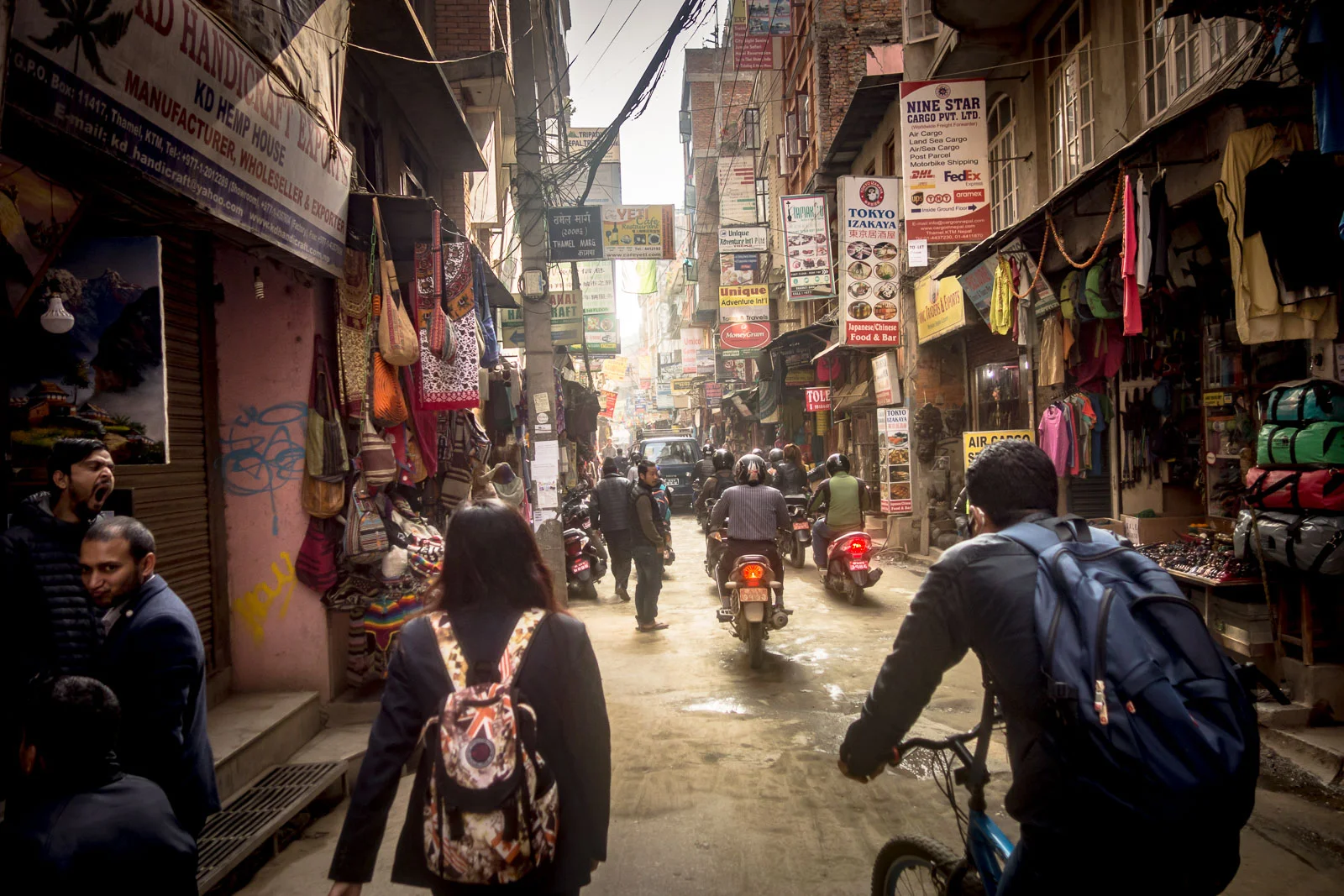 This was my first time in this part of the world. Even the taxi ride into Thamel (main tourist/backpackers area) was an assault on the senses - lane discipline and queueing are clearly not Nepali concepts. Exciting and fascinating though. Walking around the busy streets you have to be on your toes as there are cars, trucks, bikes, mopeds, motorbikes, tuk tuks etc all trying to barge/squeeze their way through the narrow streets and happy to cut it pretty fine.
